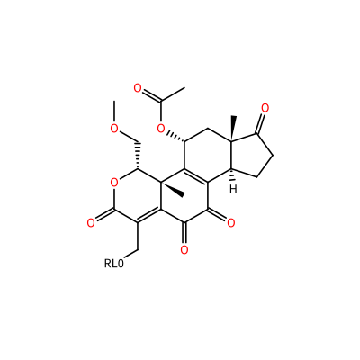 O=C(O[C@@H]1C[C@]2(C)C(=O)CC[C@H]2C=3C(=O)C(=O)C4=C(C[?RL0?])C(=O)O[C@H](COC)[C@]4(C)C13)C