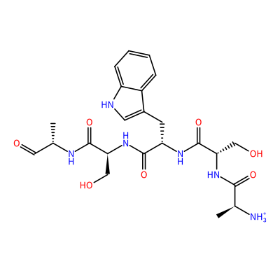 [NH3+][C@@H](C)C(=O)N[C@@H](CO)C(=O)N[C@@H](CC=1c2ccccc2NC1)C(=O)N[C@@H](CO)C(=O)N[C@@H](C)C=O