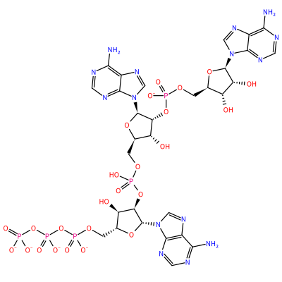 P(=O)([O-])(OC[C@H]1O[C@H]([C@@H]([C@@H]1O)O)N2C=Nc3c(N)ncnc23)O[C@@H]4[C@@H]([C@@H](COP(=O)(O)O[C@@H]5[C@H](O)[C@H](O[C@H]5N6C=Nc7c(N)ncnc67)COP(=O)([O-])OP(=O)([O-])OP(=O)([O-])[O-])O[C@H]4N8C=Nc9c(N)ncnc89)O