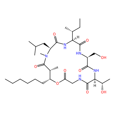 O=C1[C@@H](N(C)C(=O)[C@H](C)[C@H](OC(=O)CNC(=O)[C@@H](NC([C@@H](NC(=O)[C@@H](N1)[C@H](C)CC)CO)=O)[C@@H](O)C)CCCCCC)CC(C)C