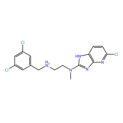 Clc1nc2N=C(Nc2cc1)N(C)CC[NH2+]Cc3cc(Cl)cc(Cl)c3