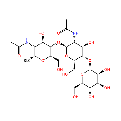 OC[C@H]1O[C@H]([C@H](NC(=O)C)[C@@H](O)[C@@H]1O[C@@H]2O[C@H](CO)[C@@H](O[C@@H]3O[C@H](CO)[C@@H](O)[C@H](O)[C@@H]3O)[C@H](O)[C@H]2NC(=O)C)[?RL0?]
