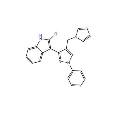 ClC=1Nc2ccccc2C1C3=NN(C=C3CN4C=NC=C4)c5ccccc5