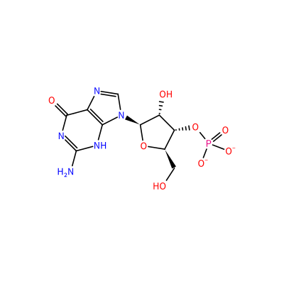 P(=O)([O-])([O-])O[C@H]1[C@@H](O)[C@@H](O[C@@H]1CO)N2C=NC=3C(=O)N=C(N)NC23