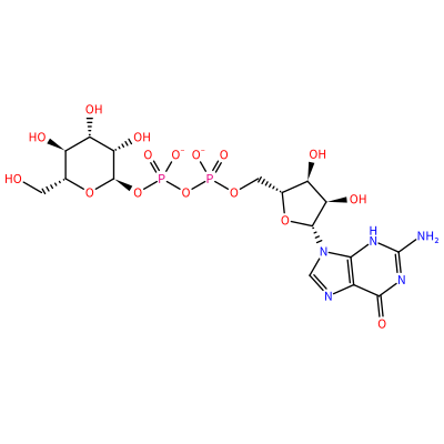 P(=O)([O-])(OP(=O)([O-])O[C@H]1O[C@H](CO)[C@@H](O)[C@H](O)[C@@H]1O)OC[C@H]2O[C@@H](N3C=NC=4C(=O)N=C(N)NC34)[C@H](O)[C@@H]2O