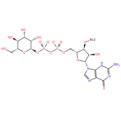 P(=O)([O-])(OP(=O)([O-])O[C@H]1O[C@H](CO)[C@@H](O)[C@H](O)[C@@H]1O)OC[C@H]2O[C@@H](N3C=NC=4C(=O)N=C(N)NC34)[C@H](O)[C@@H]2O[?RL0?]