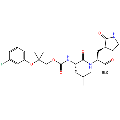 Fc1cccc(OC(C)(C)COC(=O)N[C@@H](CC(C)C)C(=O)N[C@H](C(=O)[?RL0?])C[C@@H]2CCNC2=O)c1